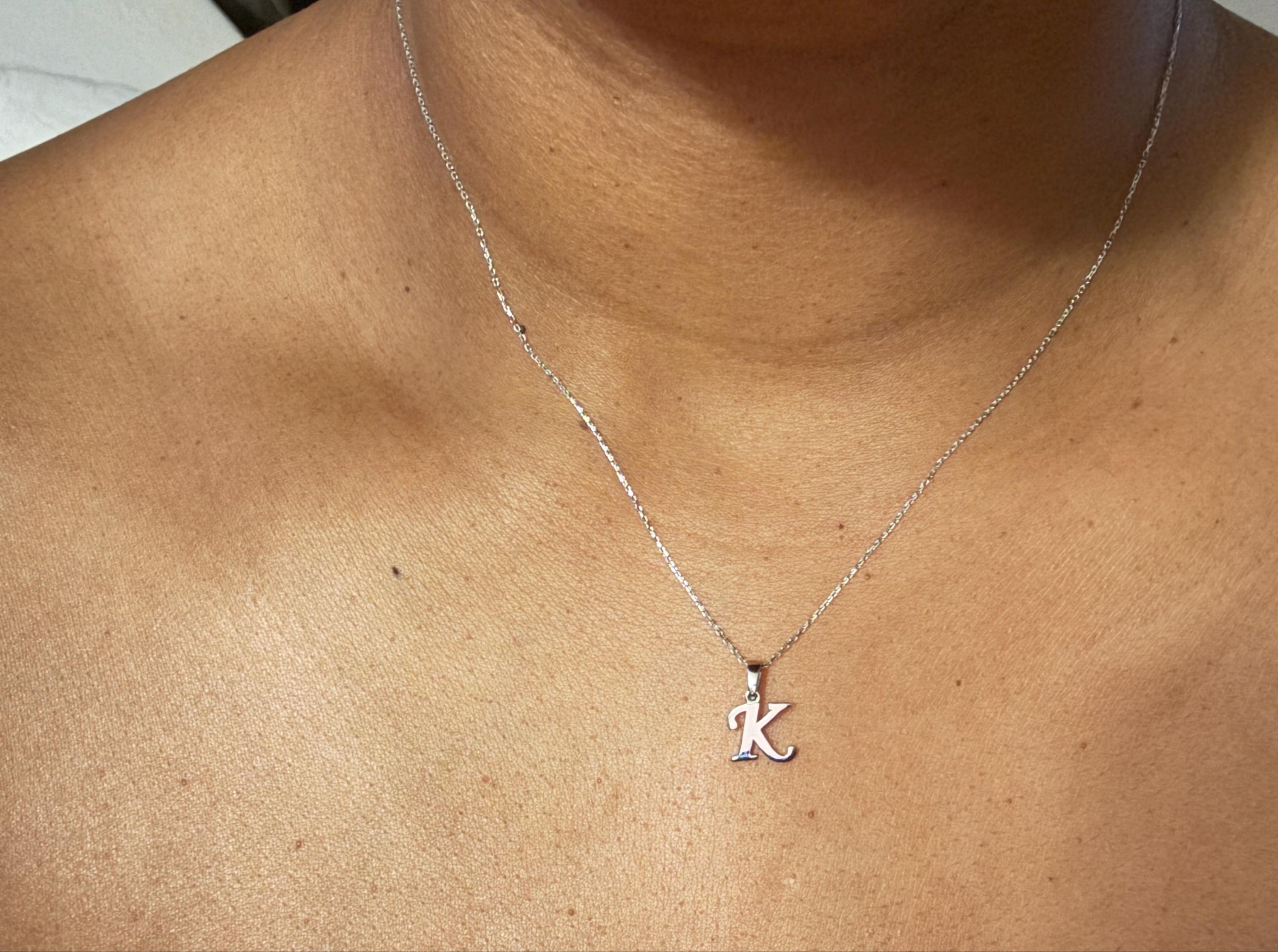 14K Solid Gold Initial Necklace, Cursive Letter Pendant, Minimal Letter Charm, Name Choker, Dainty, Personalized Pendant, Gift For her, Christmas, New Year, Mothers Day, Valentines Day, Anniversary, Birthday Gift, Fathers Day Gift, Bridesmaid Gift.