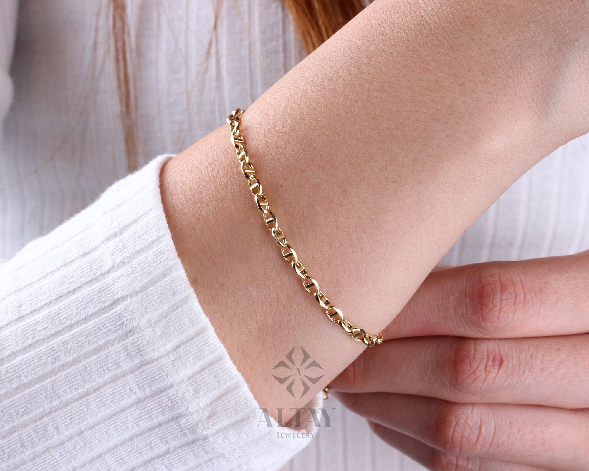 This 14K Solid Gold Mariner Link Chain Bracelet is suitable gift for girlfriend, mom and her. You can even buy as a birthday gift for your friends or anniversary gifts, If you want to add a special note we can write for you and put to inside of package.