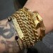 The 8in fits great, just a little small to wear alone, so I stack two gold bracelets with a beaded one for a more manly look