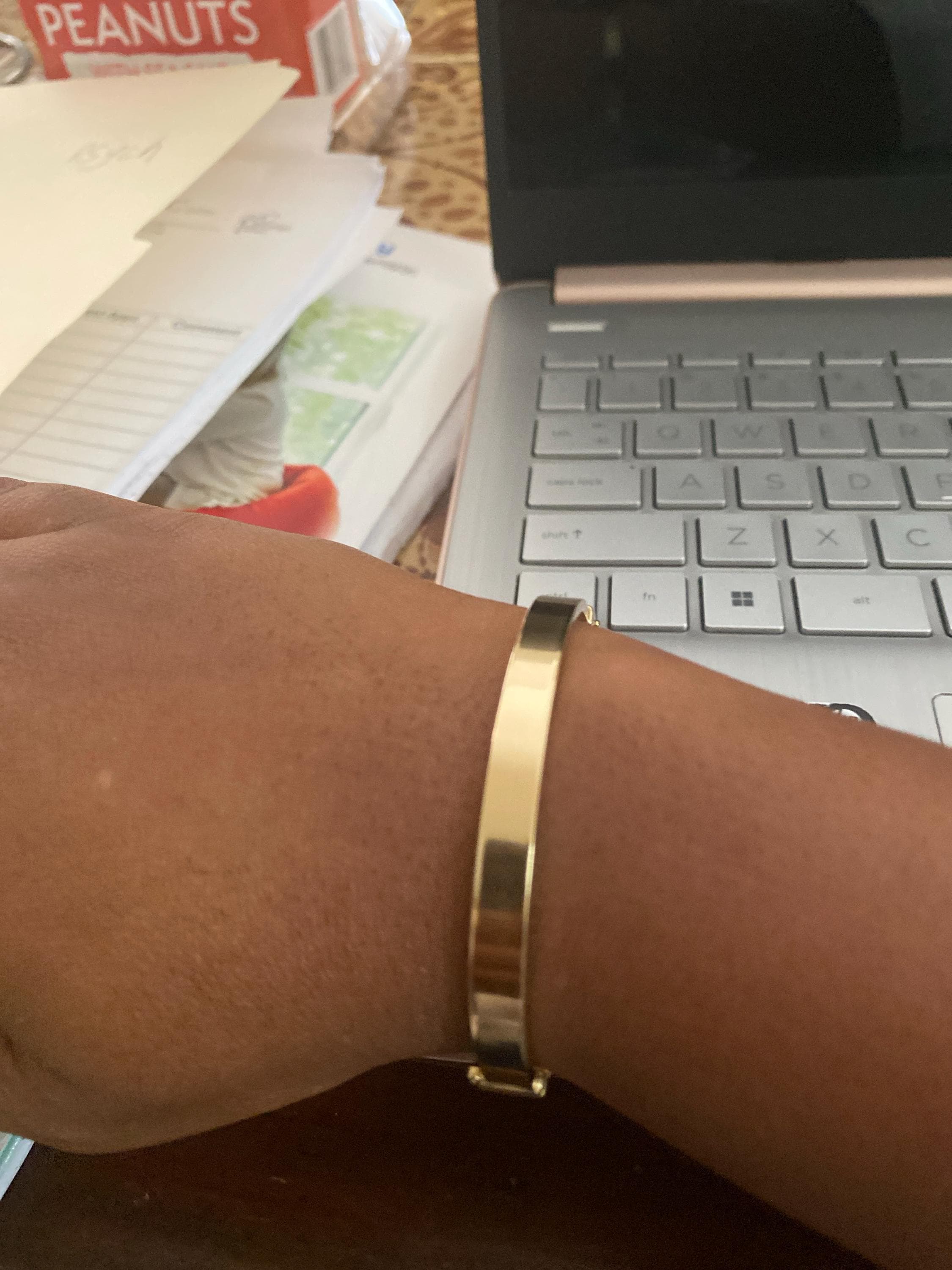 This bangle fits close to the wrist so it doesn't move while doing keyboard work. Great find for a truly finished look.