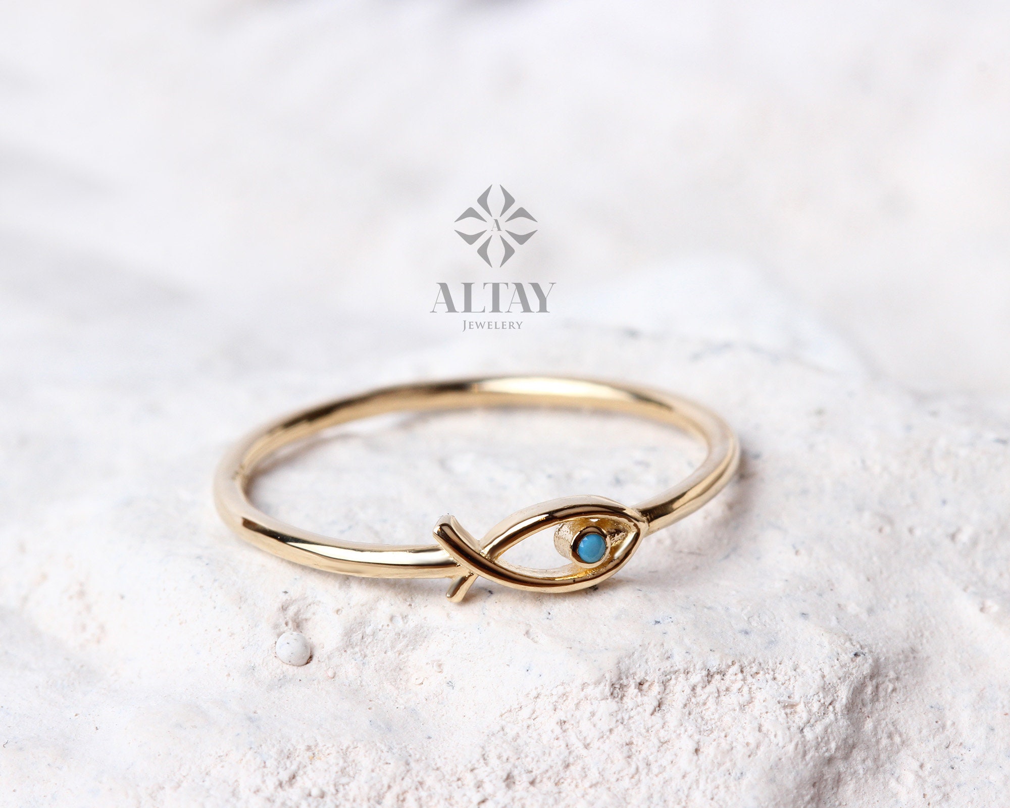 14K Gold Fish Ring, Ichthus Fish Minimal Ring, Jesus Turquoise Dainty Gold Stacking Ring, Horoscope Marine Jewelry, Good Luck, Gift for Her, Dainty Stacking Ring, Christmas Gift For Her, Valentine's Day Gift, Anniversary Gift, New Year, Fathers Day, Personalized Mothers Day, Valentines Day, Birthday Gift