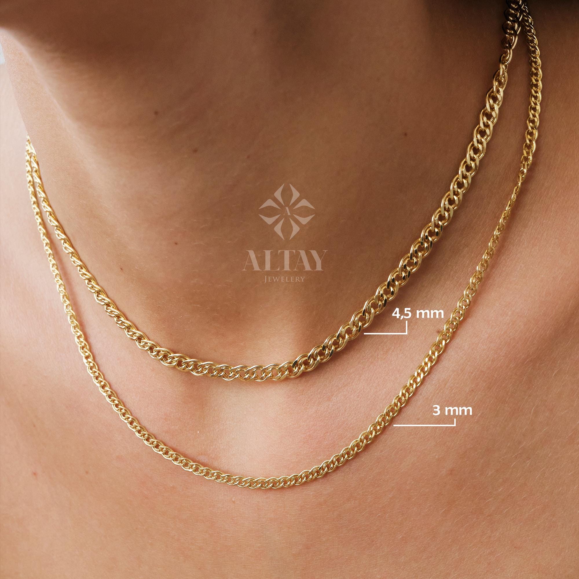 We manufacture our jewelry pieces with carefully and after production we double checking in quality control department. Our main idea is keep our items for daily wearing especially for minimalist jewelry pieces.You can wear this chain necklace in your daily activities. It's shining enough to effect to other people and perfect fitting on neck. It will be perfect layering jewelry on your neck. 14K Gold Nonna Chain Necklace, 3mm 4.5mm Nonna Charm Choker Long Thick Pendant Chain Men, Handmade Design Necklace, Elegant Women's Chain, Gift For Her, Christmas, New Year, Mothers Day, Valentines Day, Anniversary, Birthday Gift