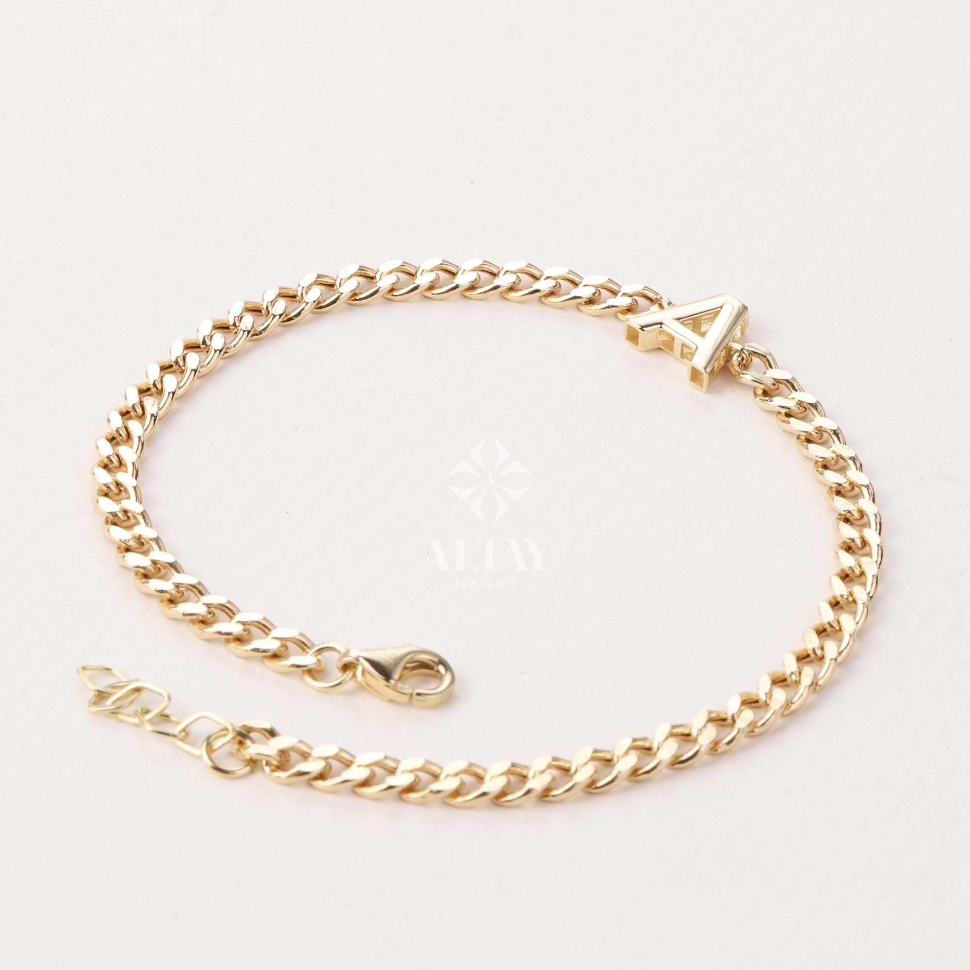 We manufacture our jewelry pieces with carefully and after production we double checking in quality control department. Our main idea is keep our items for daily wearing especially for minimalist jewelry pieces. You can wear this chain bracelet in your daily activities. It's shining enough to effect to other people and perfect fitting on wrist. It will be perfect layering jewelry on your wrist. 14K Gold Cuban Link Initial Bracelet, 3.5 mm Curb Letter Chain, Custom Miami Cuban Bold Link, Personalized Bracelet, Name Gift For Her Men, Christmas, New Year, Fathers Day, Mothers Day, Valentines Day, Anniversary, Birthday Gift