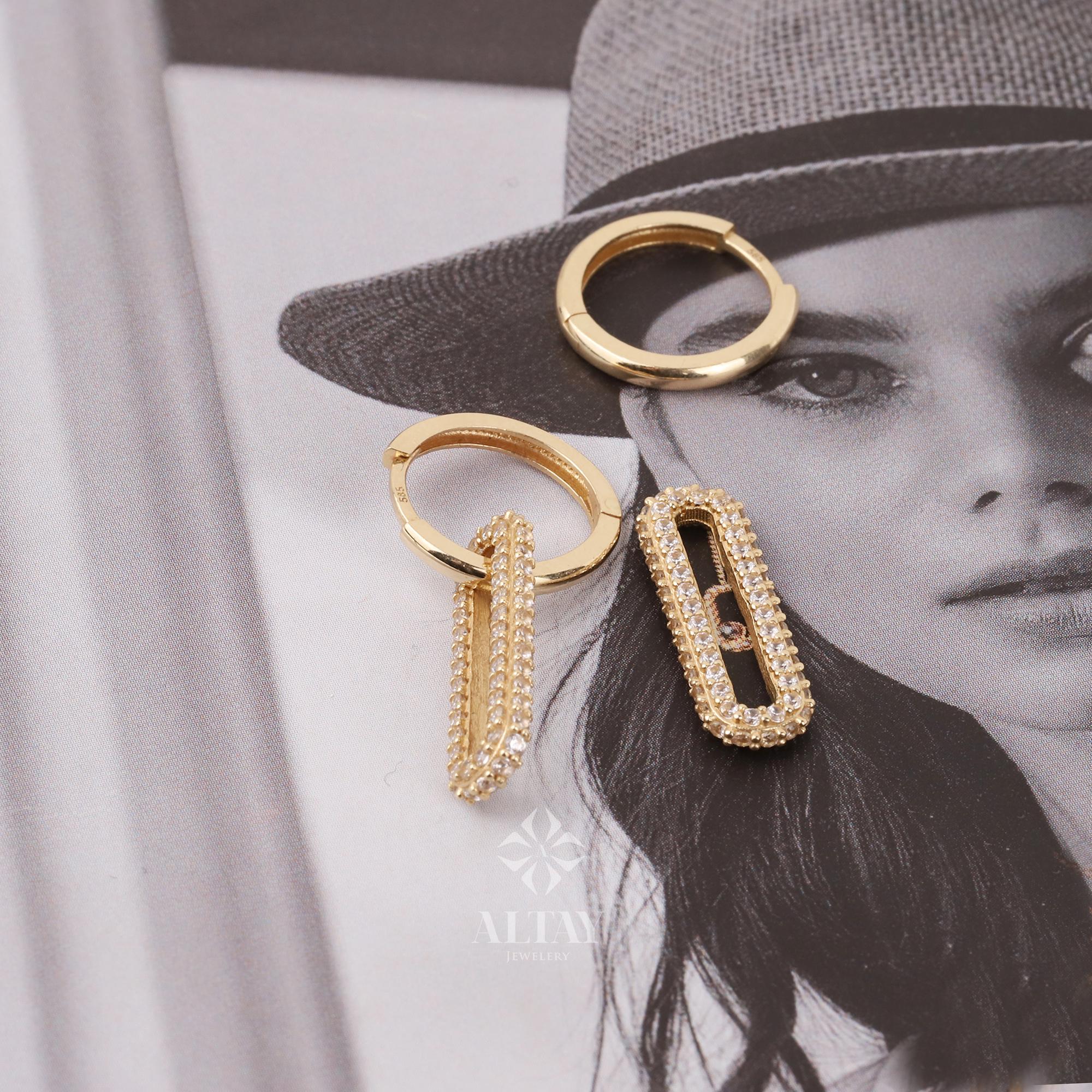 These 14K gold rectangle earrings are a beautiful and delicate piece of jewelry. The earrings feature a cz diamond hoop design, with tiny drops that add a dainty touch. They are the perfect gift for any occasion, such as Mother's Day, Christmas, Father's Day, New Year's Day, Valentine's Day, an anniversary, or a birthday. These earrings would make a great gift for her, and are a perfect way to show your love and appreciation. The huggie design makes them easy to wear and comfortable for all day use. These earrings are a delicate and elegant choice that is sure to be appreciated by any recipient.