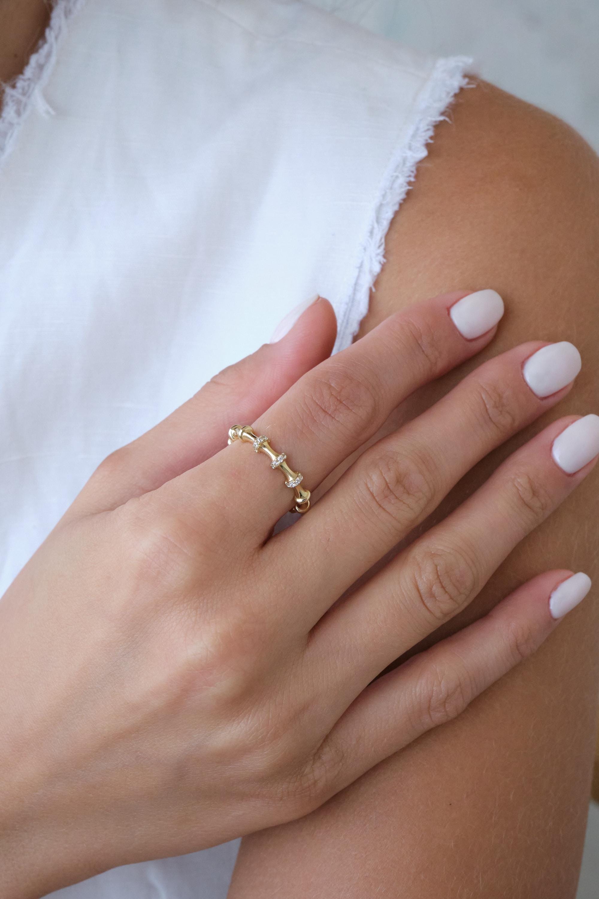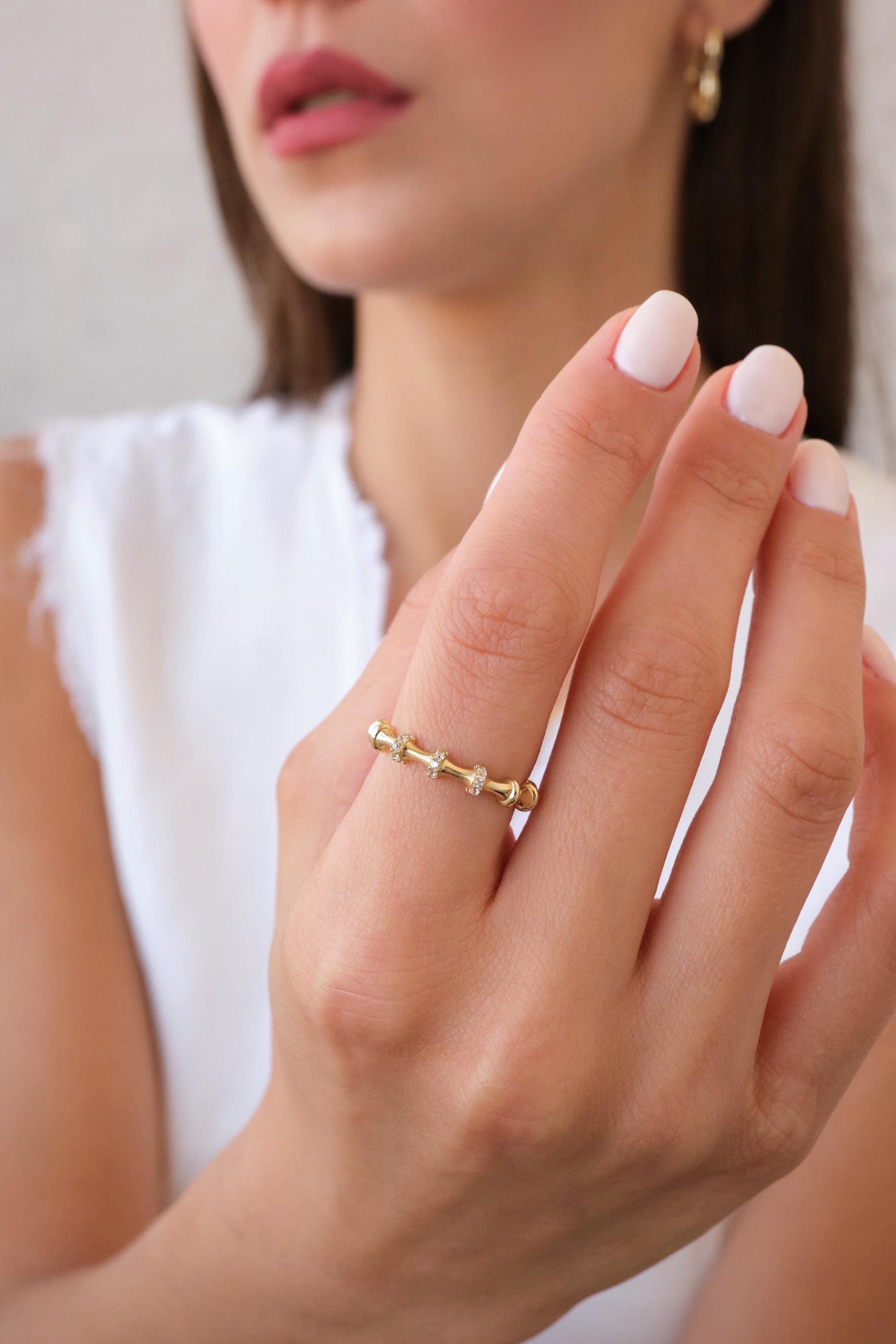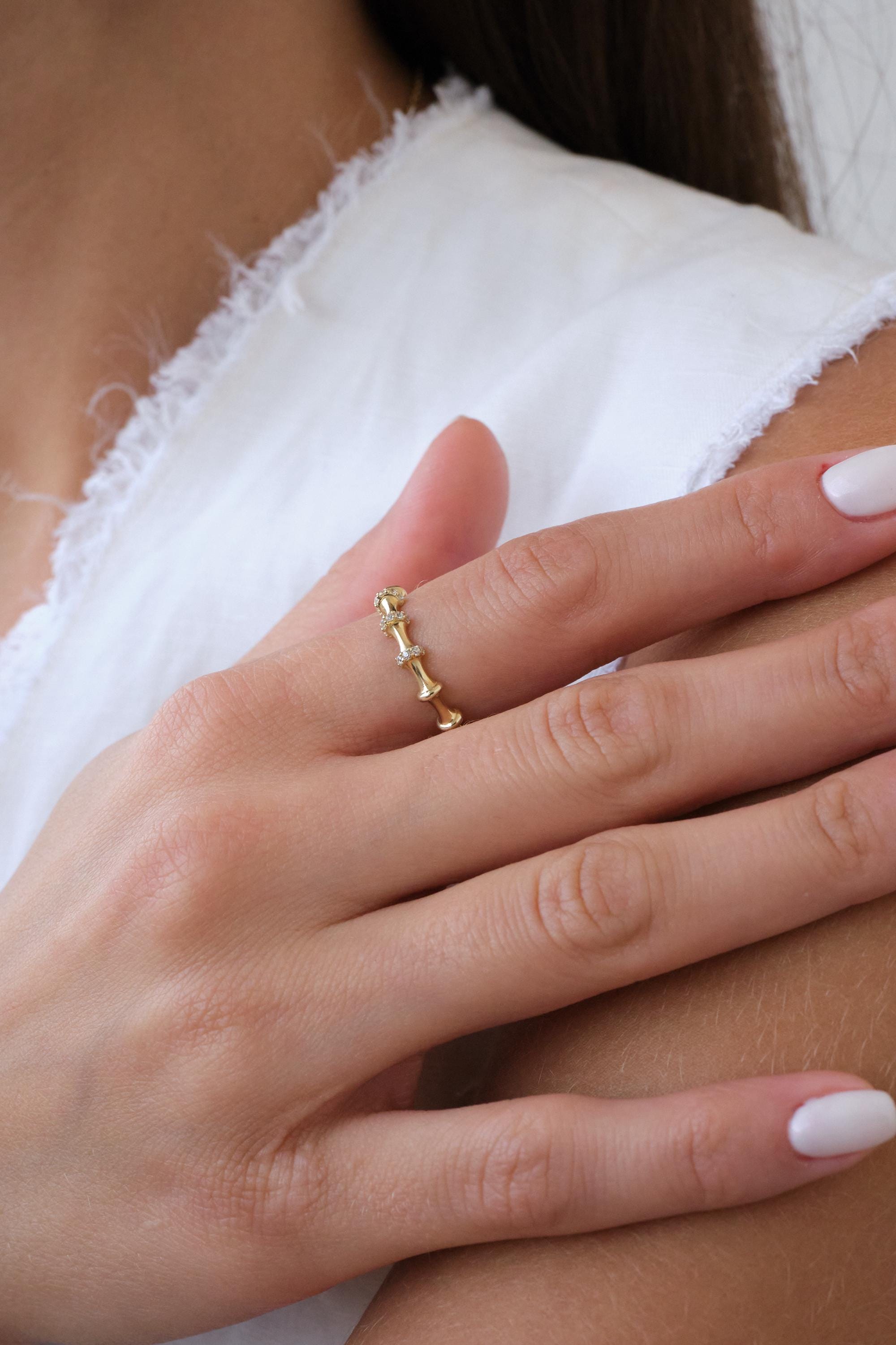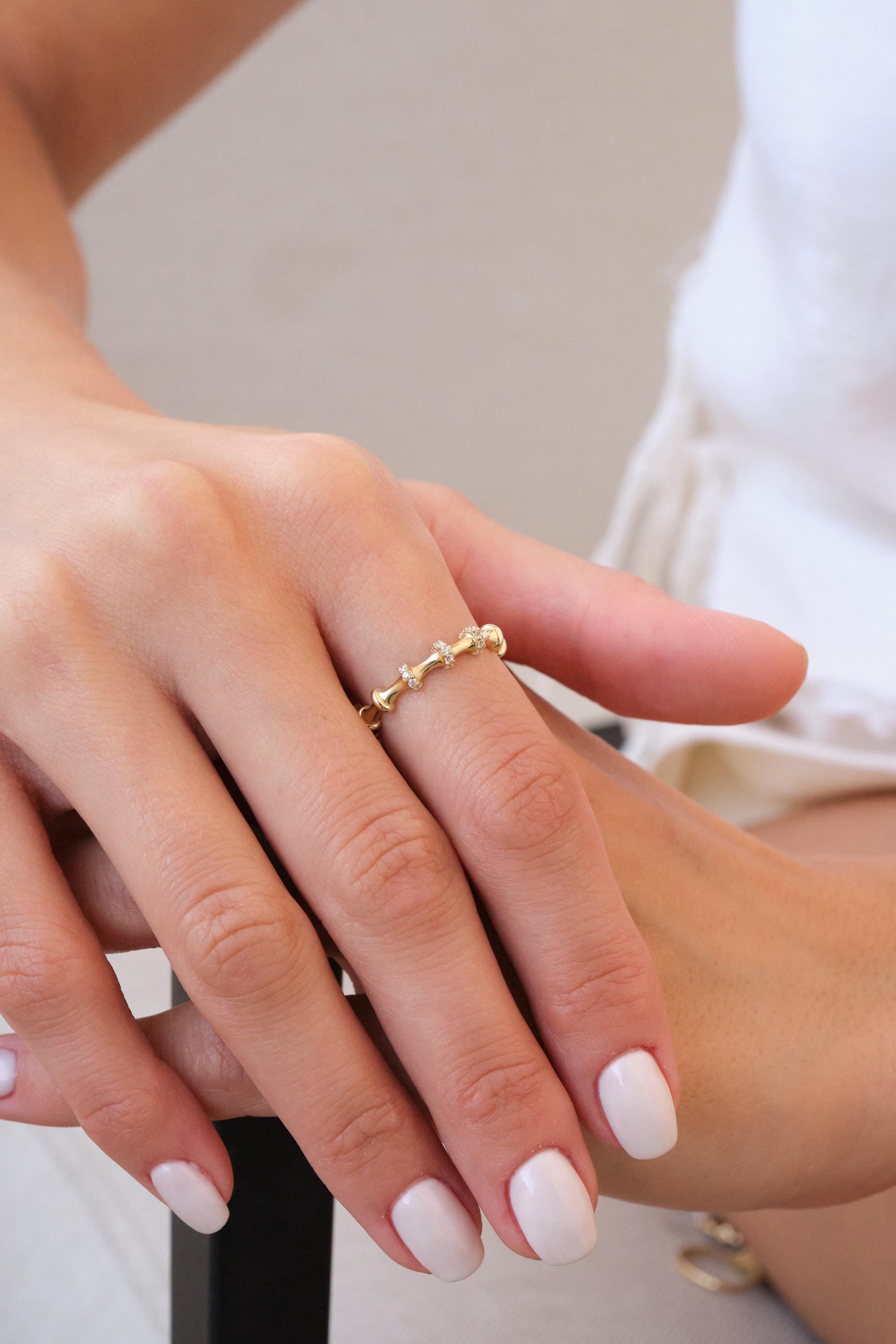 We manufacture our jewelry pieces with carefully and after production we double checking in quality control department. Our main idea is keep our items for daily wearing especially for minimalist jewelry pieces.14K Gold Bamboo Ring with CZ Stones, Dainty Textured Gold Ring, Minimal Stacking Ring, Thin Everyday Gold Ring for Her, Christmas, Valentine's Day Gift, Anniversary Gift, New Year, Mothers Day, Valentines Day, Birthday Gift, Fathers Day