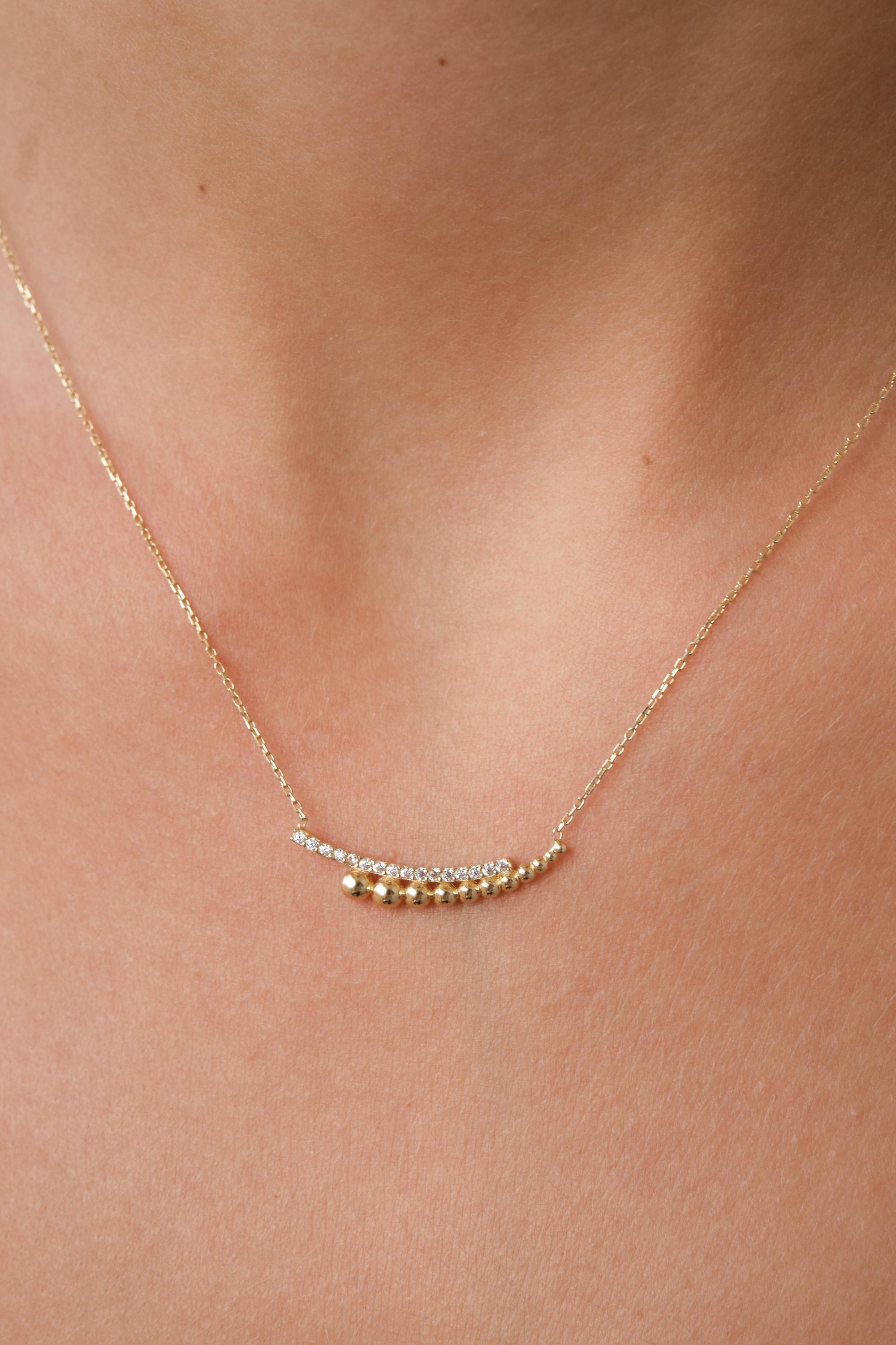 We manufacture our jewelry pieces with carefully and after production we double checking in quality control department. Our main idea is keep our items for daily wearing especially for minimalist jewelry pieces. 14K Gold Beaded Bar Necklace with CZ, Dainty Curved Bar Necklace, Minimal Gold Necklace, Everyday Sparkle Necklace for Her, Christmas, Fathers Day New Year, Mothers Day, Valentines Day, Anniversary, Birthday Gift