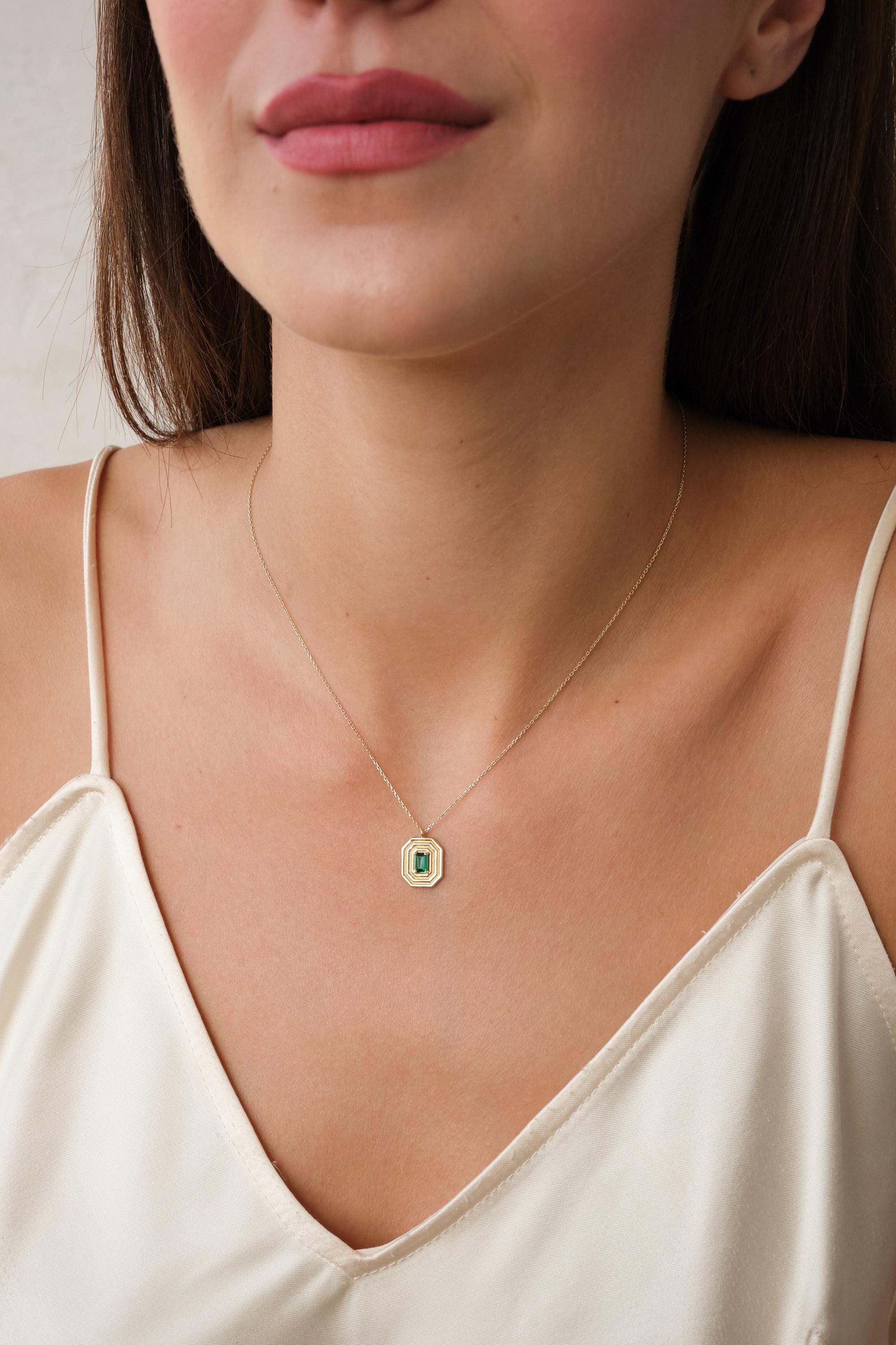 We manufacture our jewelry pieces with carefully and after production we double checking in quality control department. Our main idea is keep our items for daily wearing especially for minimalist jewelry pieces. 14K Gold Art Deco Emerald Pendant Necklace, Emerald Cut Green CZ Necklace, Geometric Gold Frame Necklace, Vintage Inspired Gold Necklace, Gift for Her, Valentine's Day Gift, New Year, Personalized Mothers Day, Valentines Day, Birthday Gift
