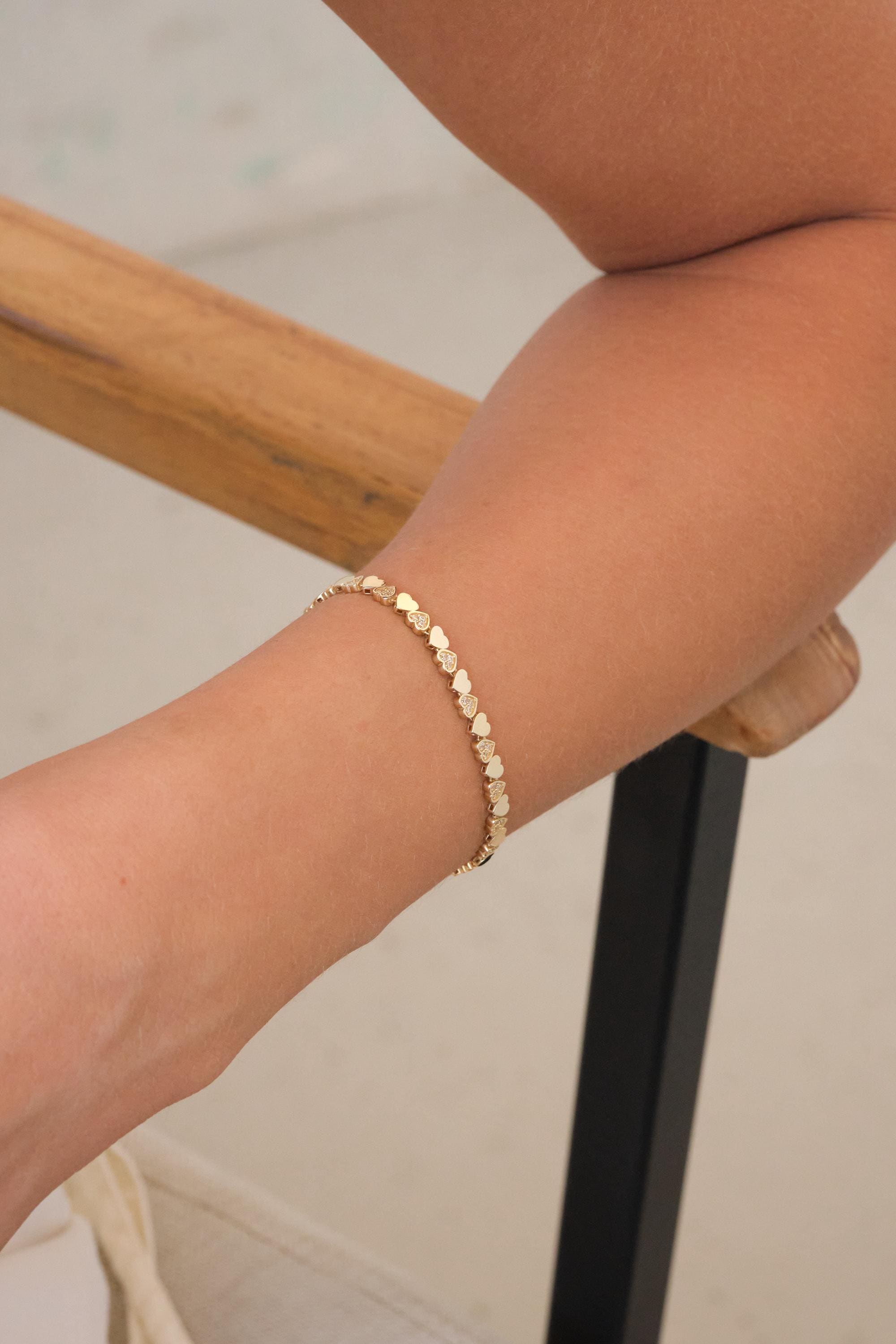 We manufacture our jewelry pieces with carefully and after production we double checking in quality control department. Our main idea is keep our items for daily wearing especially for minimalist jewelry pieces. 14K Gold Heart Bracelet with CZ Stones, 3mm Minimal Dainty Gold Bracelet, Heart Charm Jewelry Gift for Her, Christmas, New Year, Mothers Day, Valentines Day, Anniversary, Birthday Gift, Fathers Day