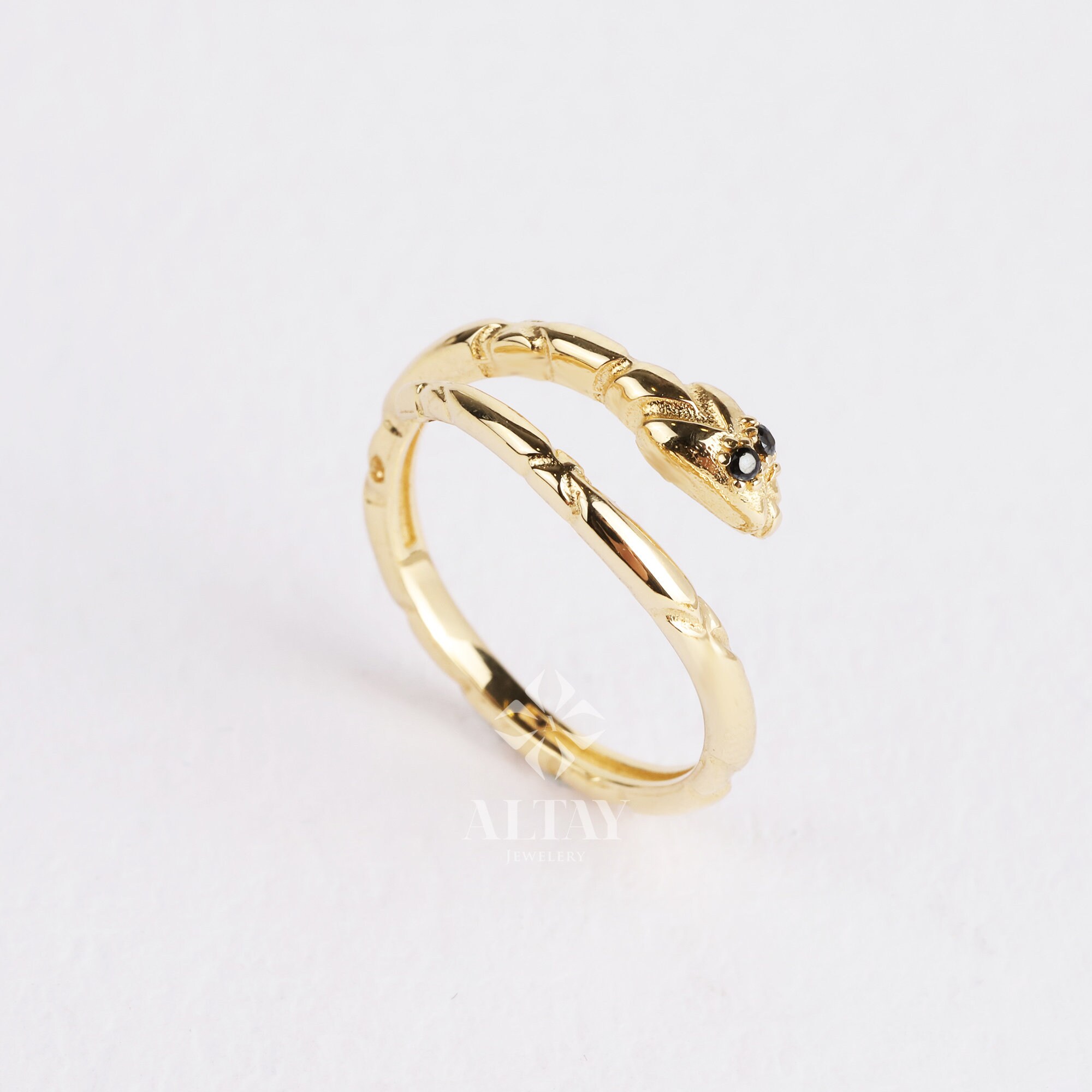 14k Gold Snake Ring, Snake Band, Open Serpent Jewelry, Dainty Stacking Animal Rings, Snake Style Ring, Open Band Statement Wrap Ring, Christmas, Valentine's Day Gift